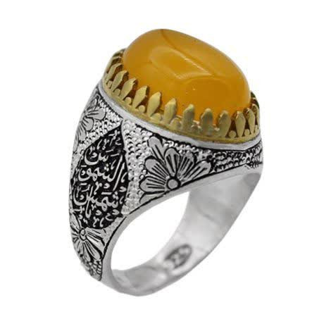 انگشتر شرف الشمس نقره مردانه طرح مصطفی + حکاکی