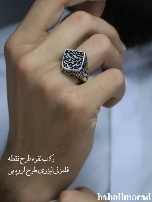 انگشتر مردانه قلم زنی لیزری حکاکی علی ولی الله طرح اروپایی رکاب نقره طرح نقطه عیار نقره 9۲۵