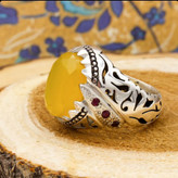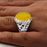 انگشتر دست ساز شرف شمس نقره مردانه دست ساز فاخر افشار با تزیین یاقوت سرخ + حکاکی