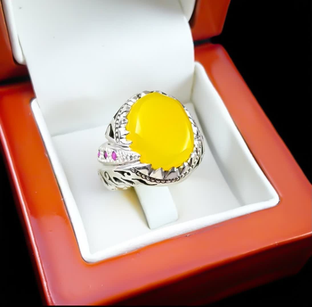 رکاب این محصول دستساز است که به خوبی میتوان در آن هنر دست هنرمندان مجرب این حرفه را مشاهده کرد. در کنار مخراجکاری، شبکه زیبایی کار شده که این محصول را به انگشتری چشمنواز تبدیل کرده است. نگین استفاده شده در این محصول شرف الشمس اصل و معدنی میباشد که با تراش الماسی درخشش و جلوه متمایزی دارد. این نگین ارزشمند علاوهبر زیبایی ظاهری دارای خواص معنوی بسیار زیاد (حکاکی دعای پر فضیلت شرف شمس در پشت نگین با آداب معین و در زمان خاص) نیز میباشد.