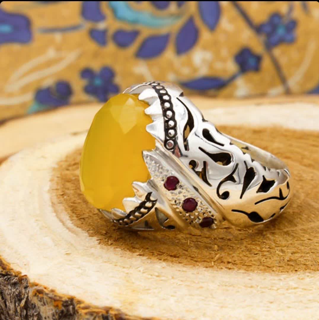 انگشتر دست ساز شرف شمس نقره مردانه دست ساز فاخر افشار با تزیین یاقوت سرخ + حکاکی