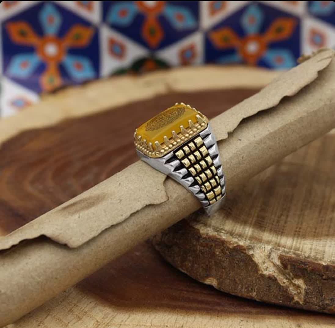 انگشتر طرح رولکسی یونا از نقره عیار ۹۲۵ است و قابلیت سایز شدن برای هر سایز انگشتی را دارا می باشد. بر روی نگین متن آیت الکرسی و حرز صغیر امام جواد (ع) با کیفیت بسیار مناسبی حکاکی شده است. نگین انگشتر نیز از عقیق زرد اصل و بسیار پر فضیلت شرف الشمس می باشد (حکاکی ذکر پر فضیلت شرف شمس در پشت نگین زرد با آداب و در زمان مخصوص). خواص افزایش رزق و روزی، دفع چشم زخم و گشایش در امور از جمله خواص مهم عقیق شرف الشمس می باشد. این انگشتر یکی از خاص ترین طرح های انگشتر است و به جهت همه پسند بودن یکی از مناسبترین انگشترها جهت هدیه دادن می باشد