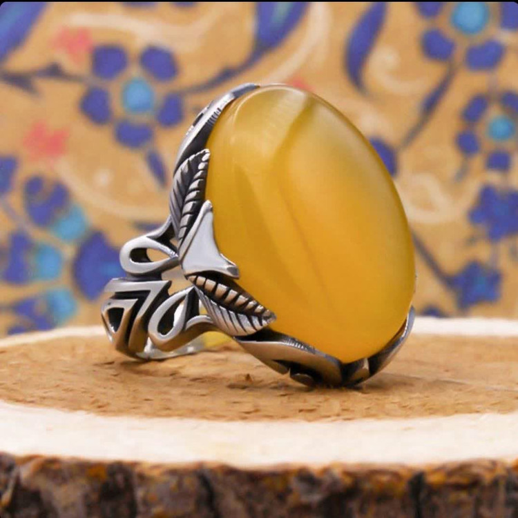 انگشتر طرح نعمان از نقره عیار ۹۲۵ است و قابلیت سایز شدن برای هر سایز انگشتی را دارا می باشد. طراحی رکاب این انگشتر از برگ درختان بهاری الهام گرفنه شده است. نگین انگشتر نیز از عقیق زرد اصل و بسیار پر فضیلت شرف الشمس می باشد (حکاکی ذکر پر فضیلت شرف شمس در پشت نگین زرد با آداب و در زمان مخصوص). خواص افزایش رزق و روزی، دفع چشم زخم و گشایش در امور از جمله خواص مهم عقیق شرف الشمس می باشد. این انگشتر یکی از اصیل ترین طرح های انگشتر است و به جهت همه پسند بودن یکی از مناسبترین انگشترها جهت هدیه دادن می باشد. طرح شبکه این انگشتر به خوبی و با ظرافت بالا اجرا شده و کیفیت مناسبی دارد. امکان تغییر سایز برای این انگشتر مهیا می باشد.