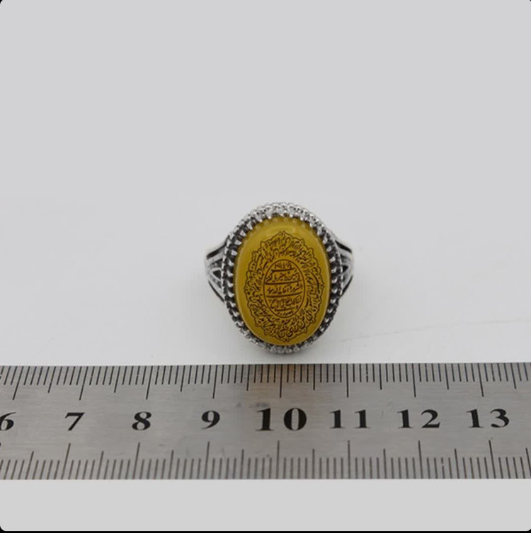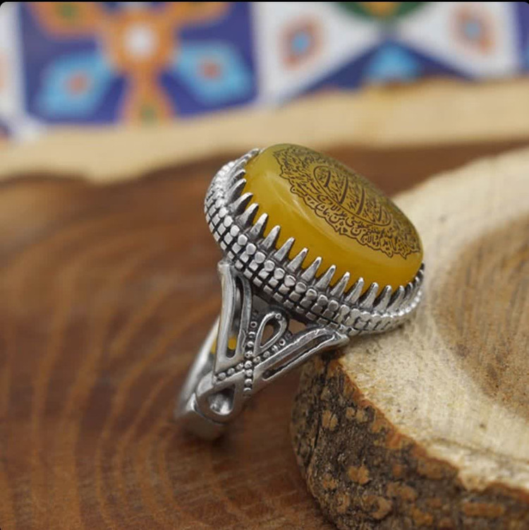 انگشتر طرح سردار دلها از نقره عیار ۹۲۵ است و قابلیت سایز شدن برای هر سایز انگشتی را دارا می باشد. ابعاد این نگین شرف الشمس حدود ۲ سانتی متر است که بر روی آن متن آیت الکرسی و حرز صغیر امام جواد (ع) با کیفیت بسیار مناسبی حکاکی شده است. نگین انگشتر نیز از عقیق زرد اصل و بسیار پر فضیلت شرف الشمس می باشد (حکاکی ذکر پر فضیلت شرف شمس در پشت نگین زرد با آداب و در زمان مخصوص). خواص افزایش رزق و روزی، دفع چشم زخم و گشایش در امور از جمله خواص مهم عقیق شرف الشمس می باشد. این انگشتر یکی از اصیل ترین طرح های انگشتر است و به جهت همه پسند بودن یکی از مناسبترین انگشترها جهت هدیه دادن می باشد. طرح شبکه این انگشتر به خوبی و با ظرافت بالا اجرا شده و کیفیت مناسبی دارد. امکان تغییر سایز برای این انگشتر مهیا می باشد.