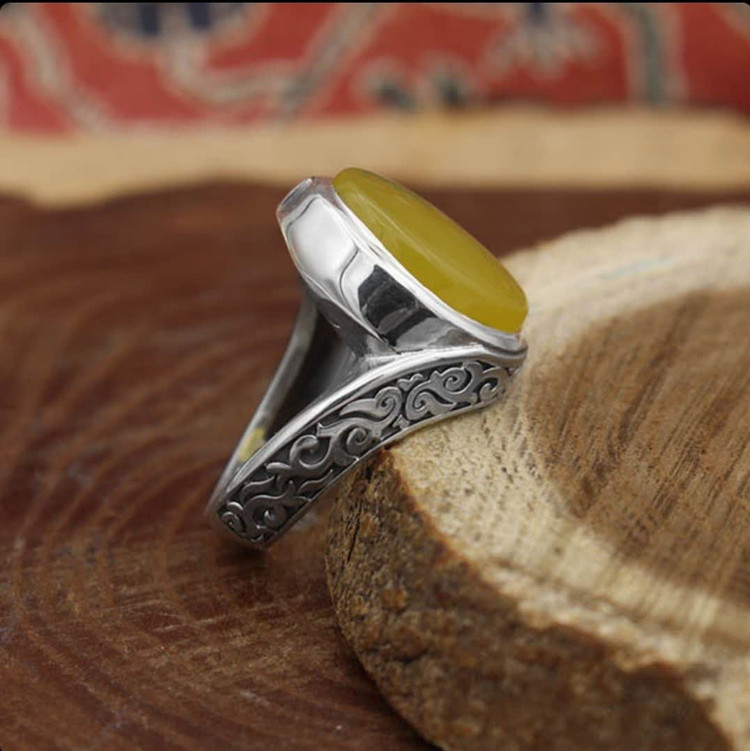 انگشتر شرف الشمس نقره مردانه طرح گلزار + حکاکی