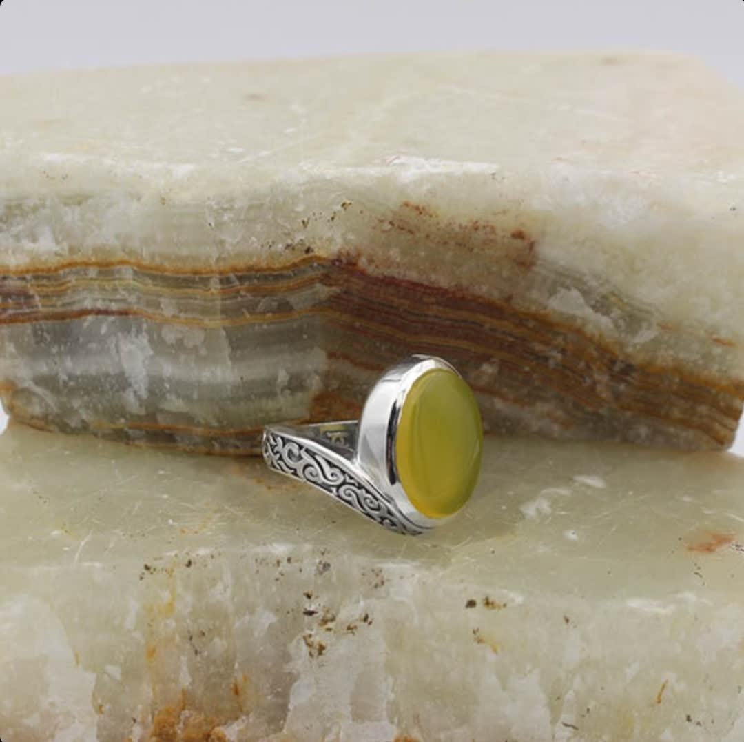 انگشتر شرف الشمس نقره مردانه طرح گلزار + حکاکی