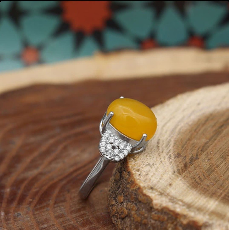 ترکیبی از طراحی مدرن و اصالت کلاسیک در این انگشتر شرف الشمس، آن را به انتخابی متفاوت تبدیل کرده است. نگین عقیق زرد طبیعی، در کنار دعای شرف الشمس، معنایی خاص به این جواهر بخشیده است (حکاکی ذکر پر فضیلت شرف شمس در پشت نگین با آداب معین و در زمان خاص). نقره 925، کیفیت بالا و دوام طولانی این محصول را تضمین میکند. همچنین، آبکاری طلا سفید، از کدر شدن و تغییر رنگ نقره جلوگیری کرده و درخشندگی آن را حفظ میکند. نگینهای اتمی درخشان، ظاهری خیرهکننده و چشمنواز به انگشتر دادهاند. قابلیت تغییر سایز نیز باعث شده تا این انگشتر برای هر دستی مناسب باشد. از جمله ویژگیهای مهم این محصول میتوان به چنگهای محکم این انگشتر اشاره کرد که به محکمی سنگ عقیق را دربر گرفتهاند.