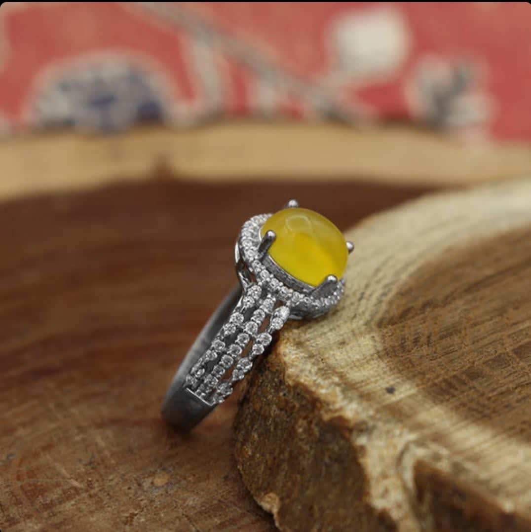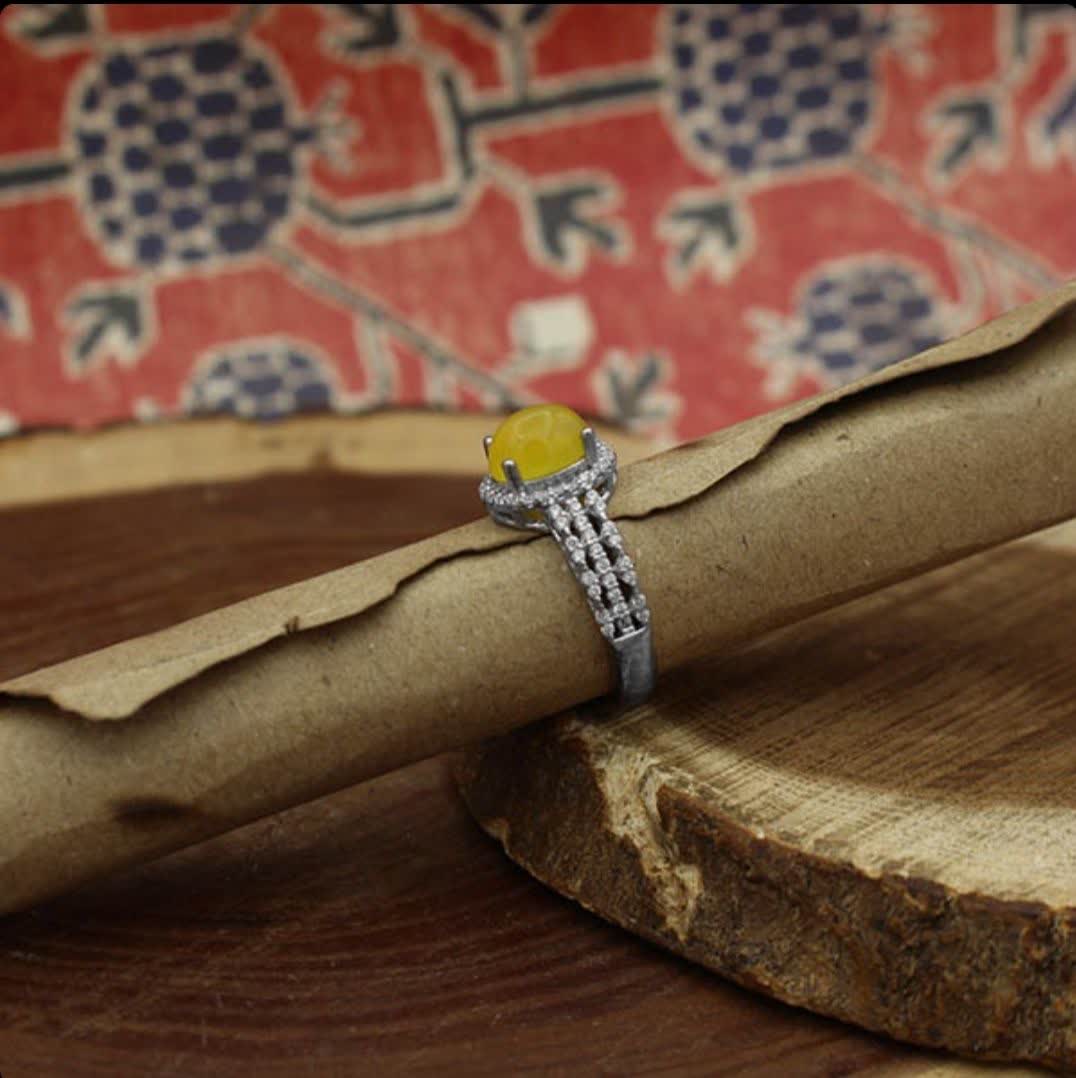 اگر به دنبال انگشتری با طراحی جذاب با قابلیت حکاکی اذکار مأثور بر روی آن هستید، انگشتر طرح رزا بهترین گزینه برای شماست. نگینهای اتمی که دور فریم قرار گرفتهاند، ترکیبشان با آبکاری طلا سفید جلا و نمایی خاص به انگشتر داده است. همچنین این آبکاری از تغییر رنگ نقره نیز جلوگیری میکند. در کنار اینها عقیق زرد نگین اصلی این انگشتر است که استفاده از آن توسط معصومین بسیار توصیه شده است، مخصوصاً اگر با دعایی همچون شرف الشمس همراه شود (حکاکی ذکر پر فضیلت شرف شمس در پشت نگین زرد با آداب و در زمان مخصوص).