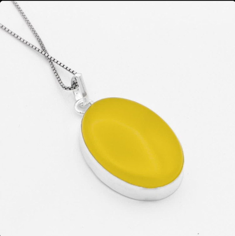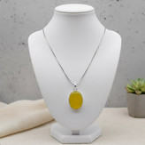 گردنبند دورساده شرف الشمس طرحی بسیار ساده و شیک است. نگین این گردنبند درشت است و ابعاد آن در تصویر در کنار خط کش مشخص شده است. این گردنبند به دلیل سادگی که دارد مناسب تمام سلیقه ها می باشد و برای خانم ها و آقایان مناسب است. جنس فریم این گردنبند نقره با عیار ۹۲۵ است. فریم این گردنبند دور تا دور نگین را با استحکام مناسبی گرفته است و در بالای آن آویز نقره متصل شده است. این آویز نیز از جنس نقره بوده و اتصال محکمی را بین زنجیر و گردنبند ایجاد می کند تا باخیال راحت برای همیشه از این خواص گردنبند شرف الشمس زنانه و مردانه استفاده نمایید. نگین این گردنبند عقیق شرف شمس اصل و معدنی است که در کتب اسلامی خواص گوناگونی برای آن ذکر شده است (حکاکی ذکر پر فضیلت شرف الشمس در پشت نگین زرد رنگ با آداب خاص و در زمان خاص آن). توجه داشته باشید که قیمت این محصول بدون احتساب زنجیر موجود در تصویر است.