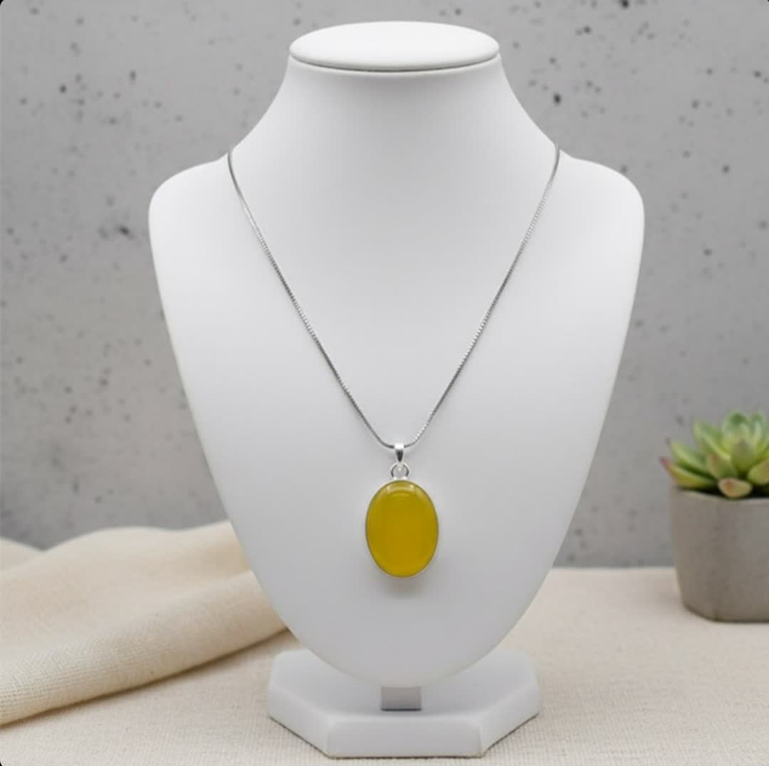 گردنبند دورساده شرف الشمس طرحی بسیار ساده و شیک است. نگین این گردنبند درشت است و ابعاد آن در تصویر در کنار خط کش مشخص شده است. این گردنبند به دلیل سادگی که دارد مناسب تمام سلیقه ها می باشد و برای خانم ها و آقایان مناسب است. جنس فریم این گردنبند نقره با عیار ۹۲۵ است. فریم این گردنبند دور تا دور نگین را با استحکام مناسبی گرفته است و در بالای آن آویز نقره متصل شده است. این آویز نیز از جنس نقره بوده و اتصال محکمی را بین زنجیر و گردنبند ایجاد می کند تا باخیال راحت برای همیشه از این خواص گردنبند شرف الشمس زنانه و مردانه استفاده نمایید. نگین این گردنبند عقیق شرف شمس اصل و معدنی است که در کتب اسلامی خواص گوناگونی برای آن ذکر شده است (حکاکی ذکر پر فضیلت شرف الشمس در پشت نگین زرد رنگ با آداب خاص و در زمان خاص آن). توجه داشته باشید که قیمت این محصول بدون احتساب زنجیر موجود در تصویر است.