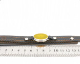 دستبند شرف الشمس چرمی دولایه طرح آیت الکرسی و حرز امام جواد (ع)، یکی از محصولات ساده و در عین حال شیک است که ارزش معنوی بالایی دارد. بر روی این نگین حکاکی “حرز صغیر امام جواد (ع)” به صورت لیزری و با کیفیت بسیار خوبی انجام شده و دور تا دور حرز “آیت الکرسی” حک شده است. ظرافت حکاکی این دو فراز از قرآن و روایات ائمه بسیار مناسب است و زیبایی هنری خاصی به این دستبند داده است. چرم استفاده شده در این محصول چرم طبیعی و به رنگ مشکی براق است. در این محصول از دو لایه چرم طبیعی با کیفیت استفاده شده که مدلی خاص اما ساده است. نگین این محصول عقیق شرف شمس اصل و معدنی است که رنگ زرد مناسبی دارد و طبق کتب معتبر دارای خواص بی شماری است (حکاکی ذکر با برکت شرف شمس پشت نگین در زمان مقرر و با آداب خاص). جنس فریم دستبند از نقره اصل با عیار ۹۲۵ است که استحکام و دوام مناسبی دارد و با دو بند چرمی محکم به دستبند متصل شده است. این فریم دست ساز است و به دست یکی از هنرمندان نقره ساز مشهدی ساخته شده است. کیفیت ساخت فریم مناسب ارزیابی می شود و به صورت کاملا محکم سنگ عقیق را دربرگرفته است. این دستبند مشابه ساعت بوده و برای هر سایز مچی مناسب است.