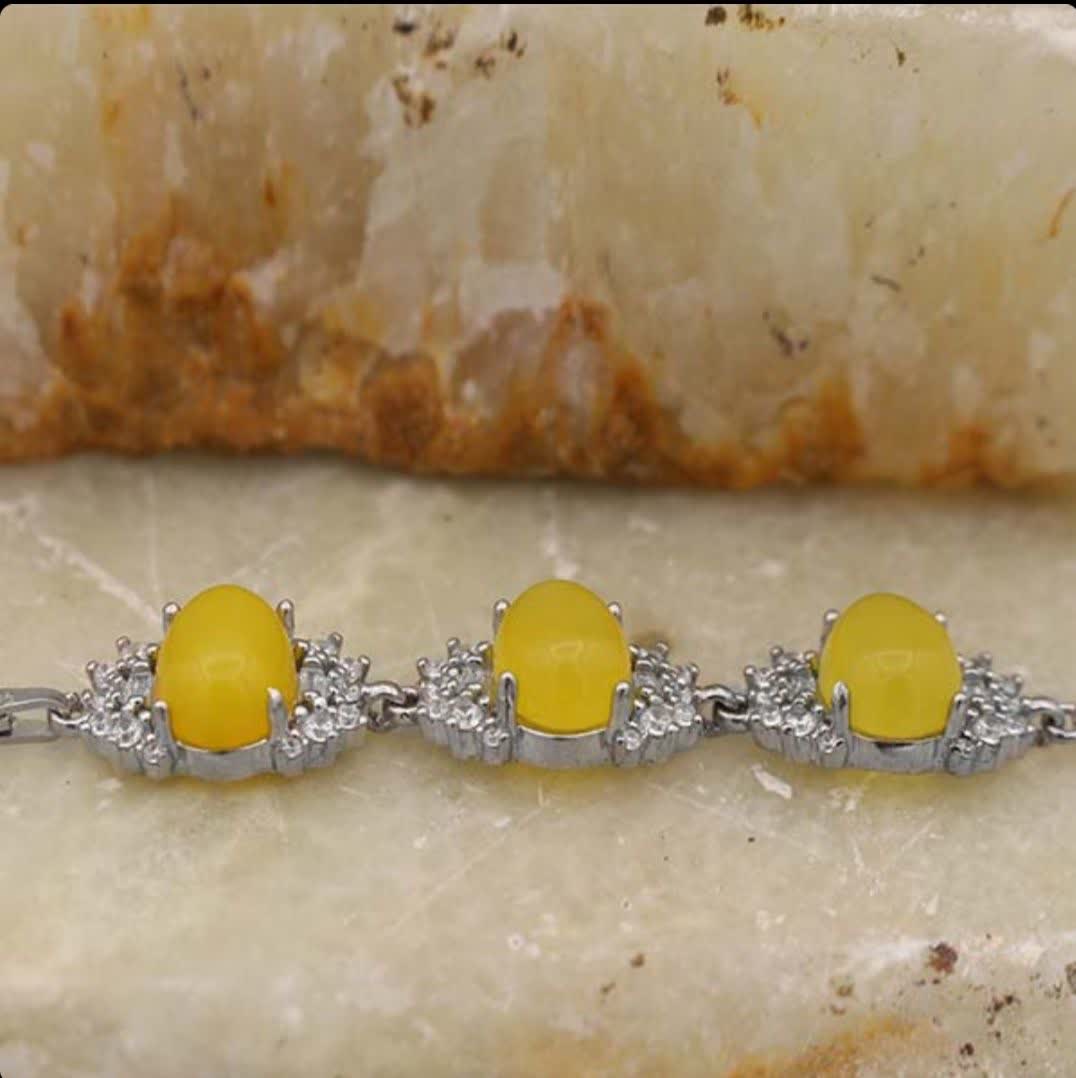 یکی از جذاب ترین دستبندهای موجود بر روی وبسایت، طرح الیزا است. این محصول از نقره با عیار 925 ساخته شده است و از استحکام خوبی برخوردار است. 3 نگین عقیق زرد معدنی بر روی دستبند کار شده و امکان حکاکی نیز بر آن ها وجود دارد (حکاکی ذکر پر فضیلت شرف شمس در پشت نگین زرد با آداب و در زمان مخصوص). آبکاری طلاسفید به همراه نگینهای اتمی در اطراف دستبند جلوهای بی نظیر به آن داده است و چشم هر بینندهای را مجذوب خود میکند. این آبکاری از تغییر رنگ نقره نیز جلوگیری میکند