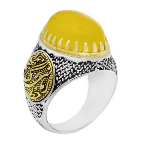 انگشتر شرف الشمس نقره مردانه طرح دورطلایی فاخر یا علی مدد + حکاکی