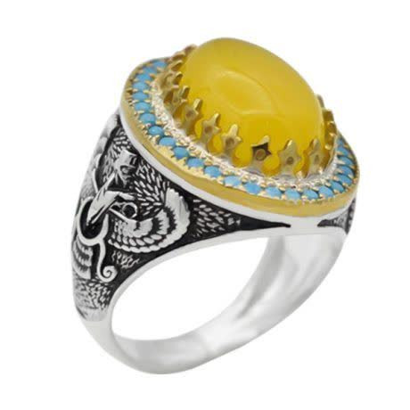 انگشتر شرف الشمس نقره مردانه دست ساز طرح کیکاووس + حکاکی