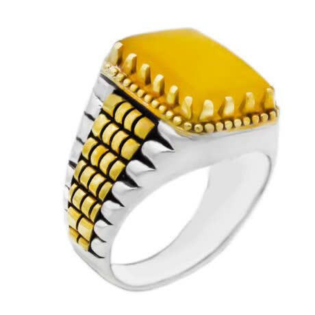 انگشتر شرف الشمس نقره مردانه طرح دورطلایی مهرداد + حکاکی