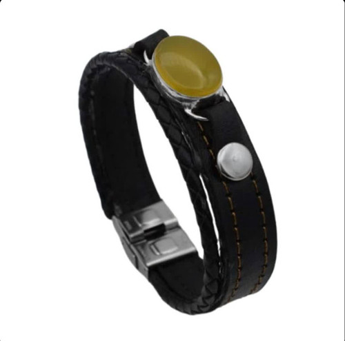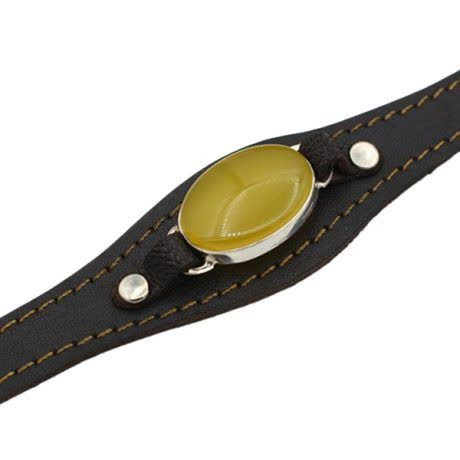 دستبند نقره چرم طبیعی مشکی طرح انتظار با نگین عقیق شرف الشمس + حکاکی