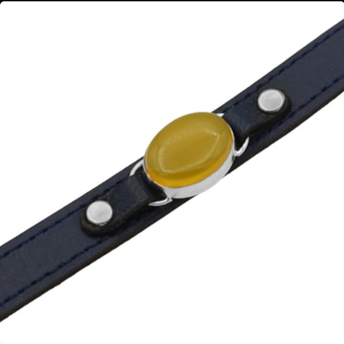 دستبند شرف الشمس نقره چرم سرمه ای بلند کلاسیک طرح کمیل + حکاکی