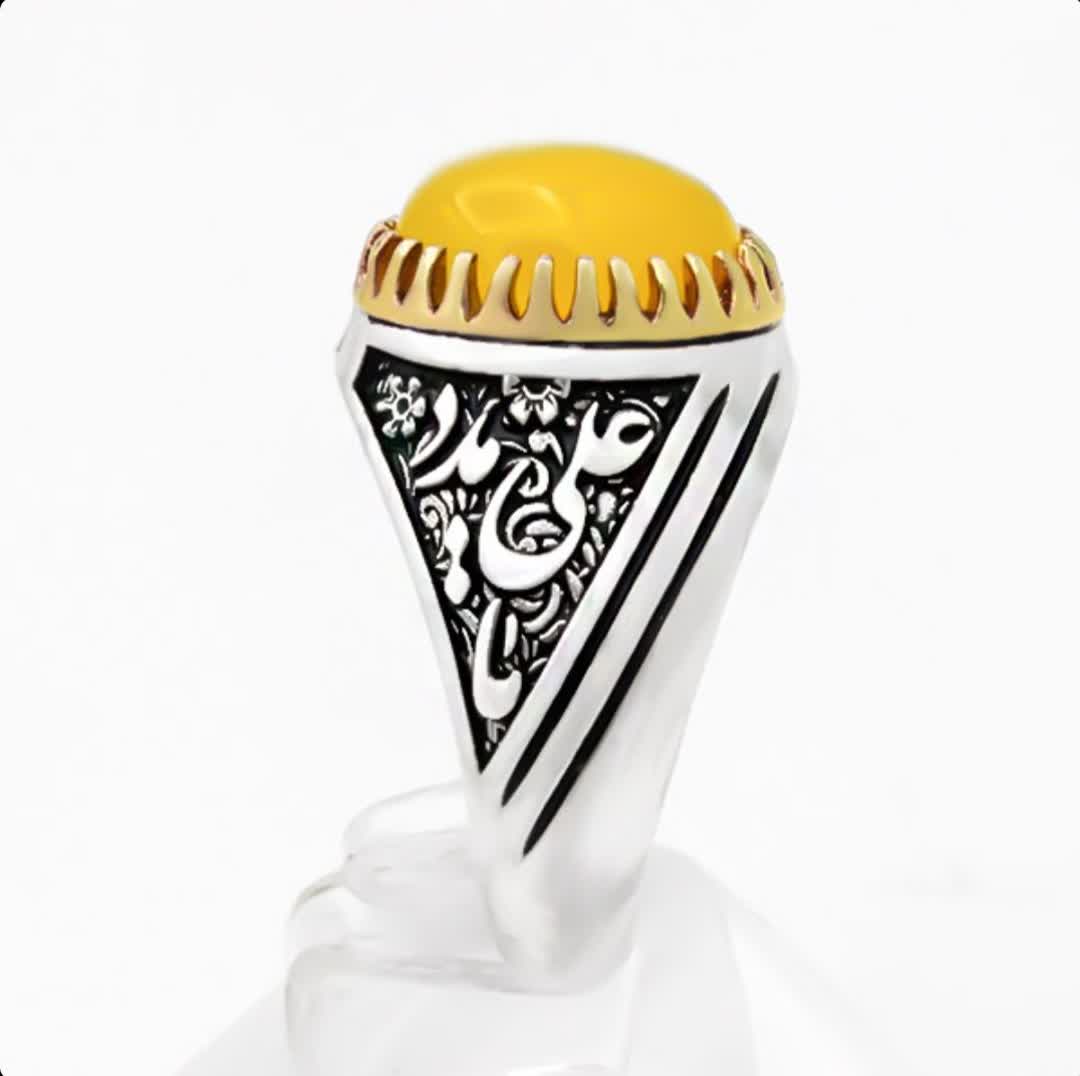 انگشتر شرف الشمس نقره مردانه طرح علی علیه السلام + حکاکی