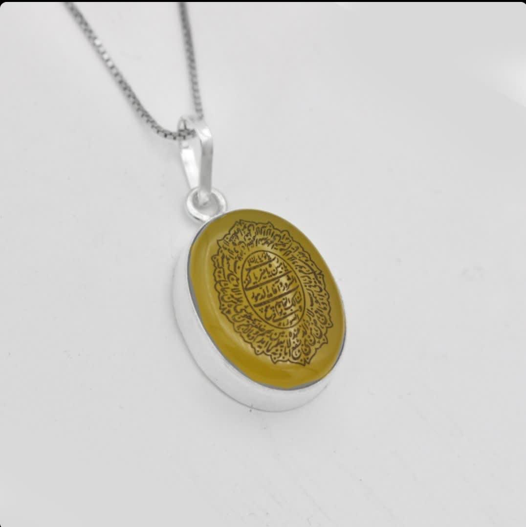 گردنبند شرف الشمس زنانه و مردانه نقره طرح ولایت + آیت الکرسی + حرز امام جواد (ع) + حکاکی شرف الشمس