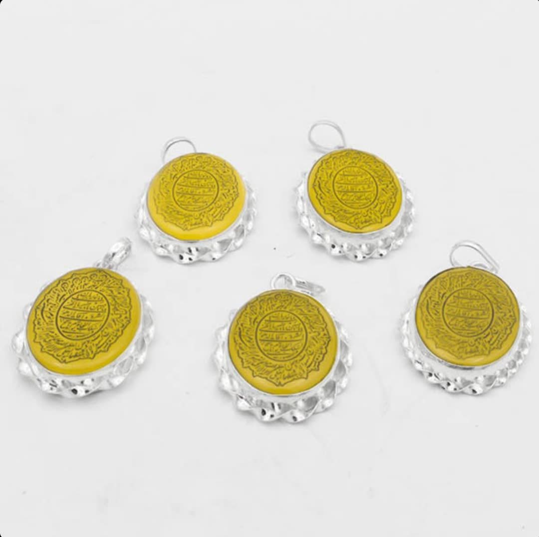 گردنبند شرف الشمس زنانه و مردانه نقره طرح غدیر+ آیت الکرسی +پنج حرز +حکاکی شرف الشمس